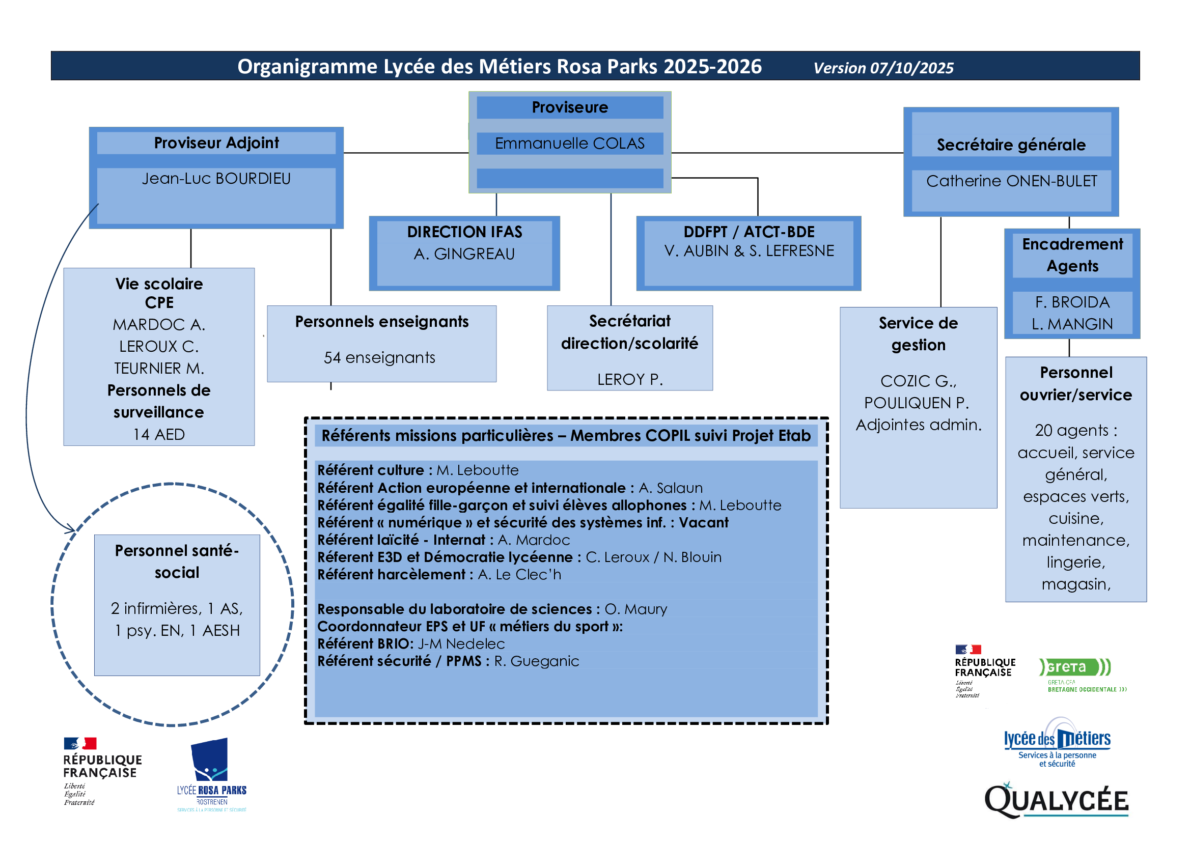 Organigramme Lycée des Métiers Rosa Parks 2025-2026 |