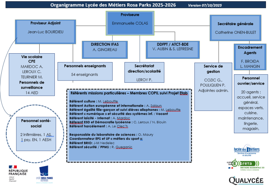 Organigramme Lycée des Métiers Rosa Parks 2025-2026